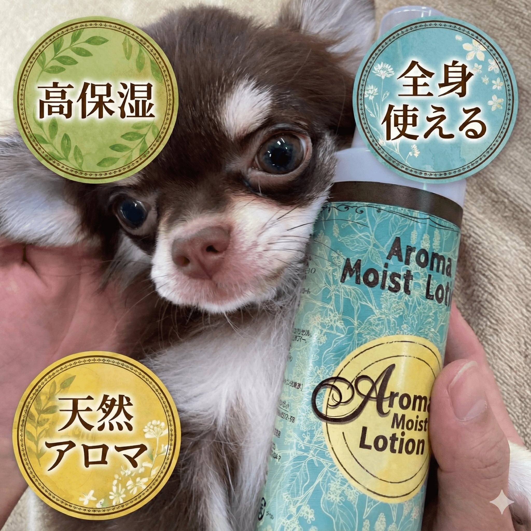 愛しいペットとあなたへの2本セット。 2本目を10%割引にてご提供いたします。 精一杯の企業努力です。 ◆ スプレーした瞬間、癒しの香りが包み込む特別なスキンケア時間 愛おしい「うちの子たちとの時間をもっともっと大切にしたい・・・ スキンシップのひとときをもっともっとしあわせにすごしたい・・・ そんな想いから生まれた、ペットも飼い主さまも一緒にお使いいただける新感覚モイストローション。ウッディーフローラルの自然な香りで、毎日のケアが心地よいリラックスタイムに変わります。 --- ◇ 家族の真ん中に置いて楽しむアロマローション ヒトのお手入れのためにつくったアイテムを動物たちも「同じものを」「いっしょに」をコンセプトに改良しました。 長年のスキンケア経験によりつくられたこだわりの「清潔」と「保湿」Wのスキンケア。家族の真ん中に置いて楽しんでいただきたいアロマロローションです。 --- ▲ 商品詳細 商品名: アロマロモイストローション 容量: 150ml 香り: ウッディーフローラル(天然由来) 成分: 天然由来成分配合・合成香料不使用 用途: ペット用・人用兼用化粧品 --- ⚠️ 重要事項 ・本商品は化粧品であり、医薬品ではありません ・体調不良や皮膚トラブルがある場合は獣医師にご相談ください ・効果には個人差があります --- 毎日のケアが特別な癒しの時間になりますように。「癒される」より「癒し合おう」- あろまろと始まった、心とお肌の潤い生活をお届けします。