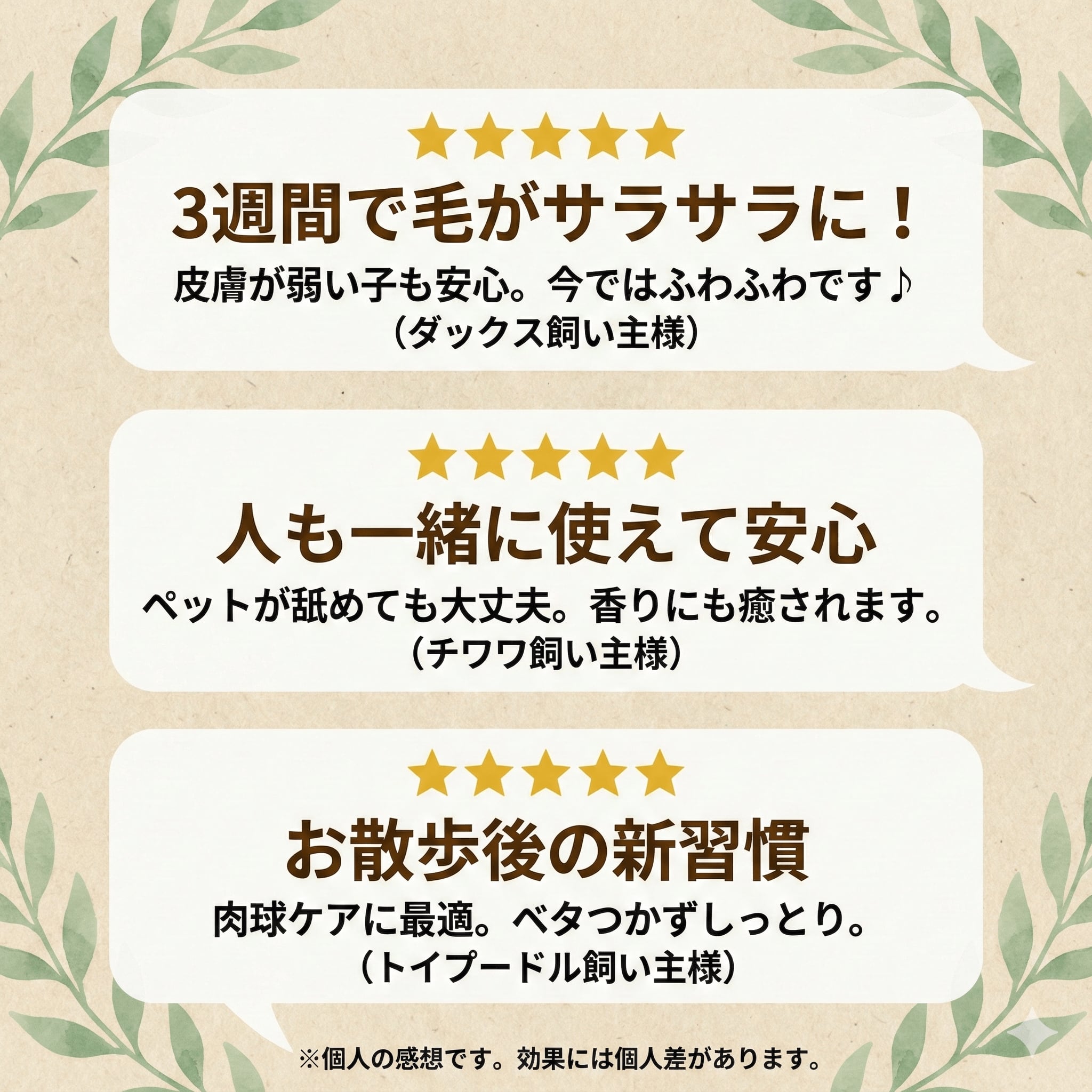 ヒトのお手入れのためにつくったアイテムを動物たちも「同じものを」「いっしょに」をコンセプトに改良しました。