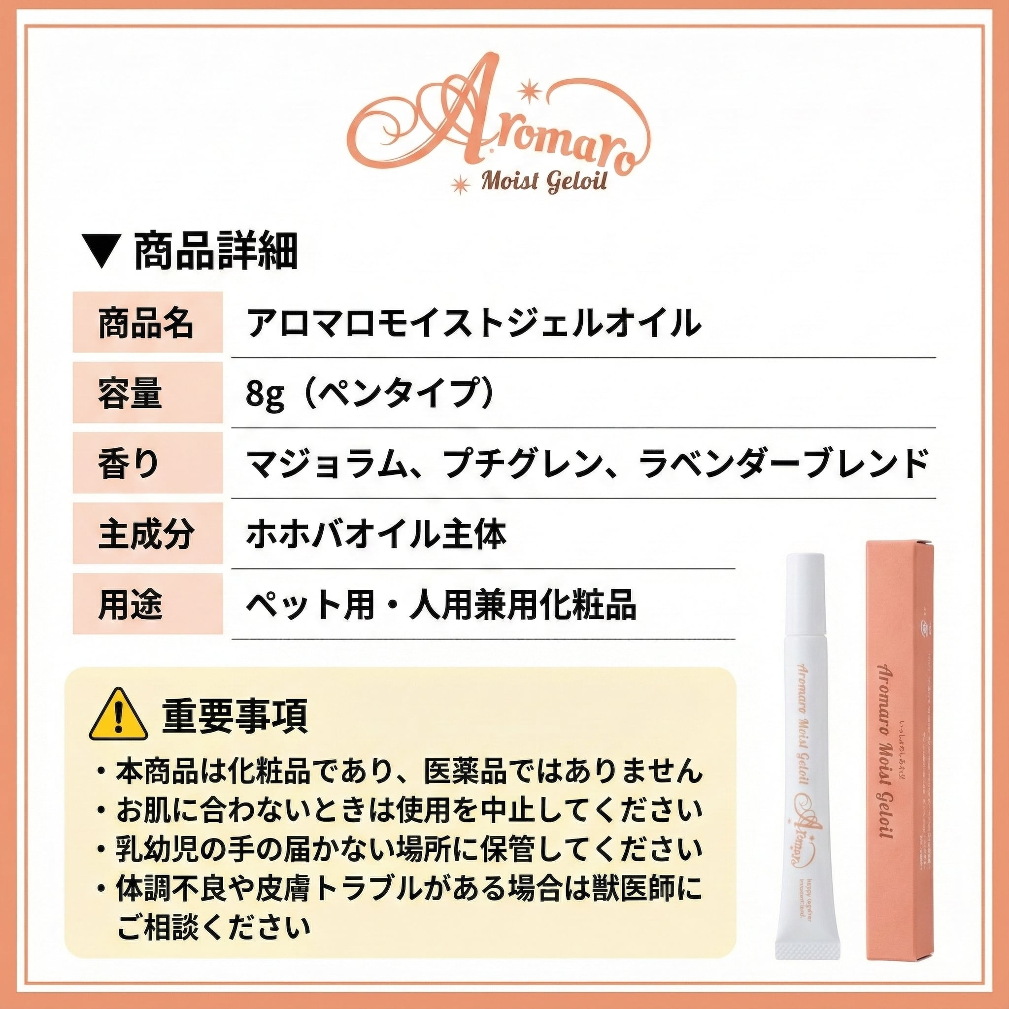 ■ 商品概要 「ジェル?オイル?」不思議な使い心地の新感覚スキンケア。 ベタつきが苦手なペットや、忙しい飼い主様のために開発された、携帯に便利なペンタイプの保湿剤です。