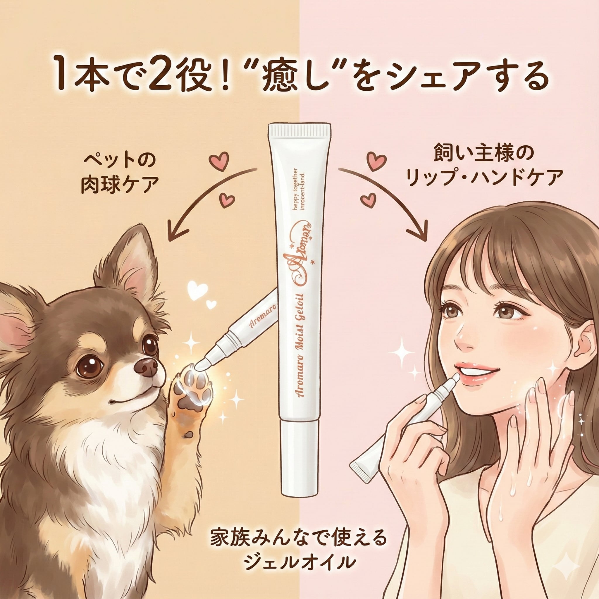 シェアする喜び: 化粧品登録済みなので、ペットの肉球ケアだけでなく、飼い主様のリップやハンドケアにも安心してお使いいただけます。