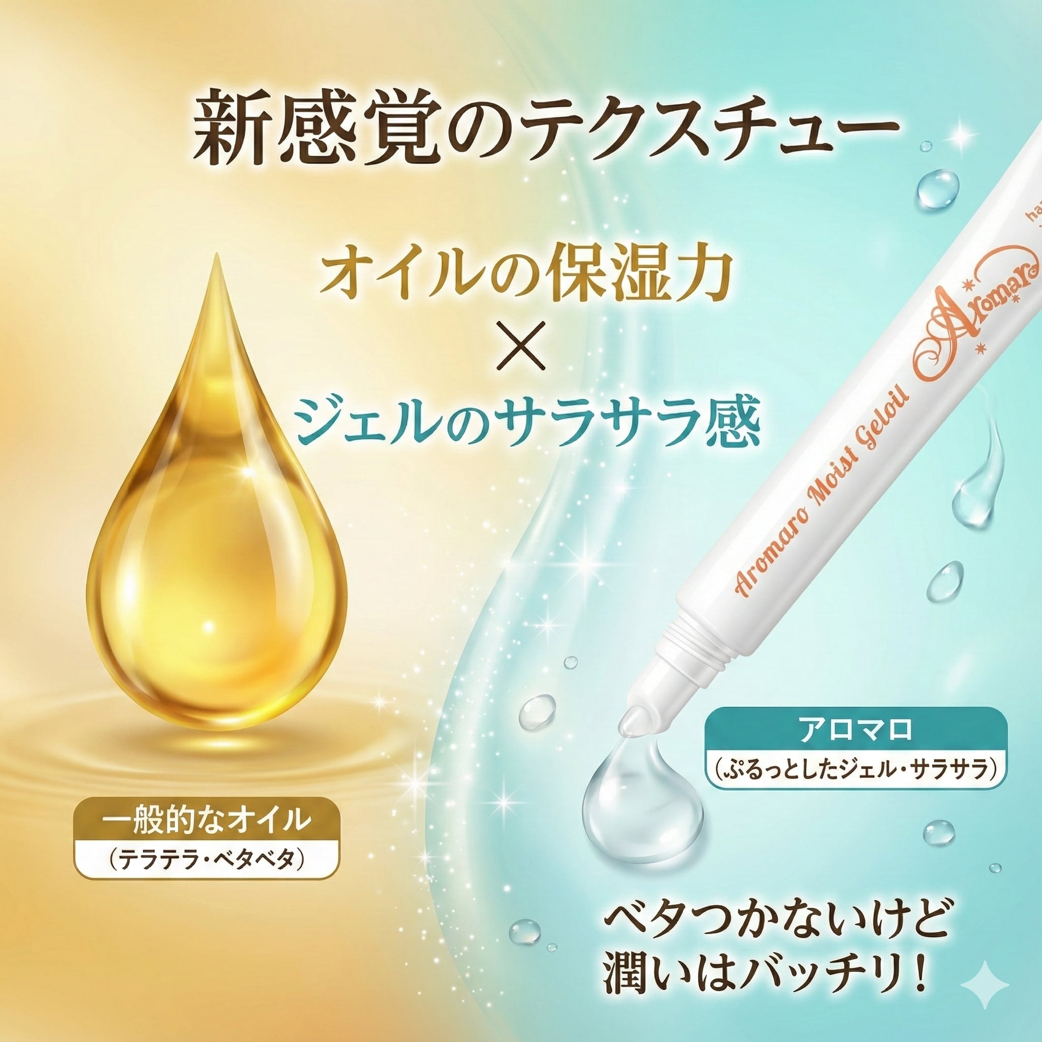 Q. ベタつきますか? A. 独自のジェルオイル処方により、少量でよく伸び、すぐに馴染んでサラサラになります。